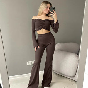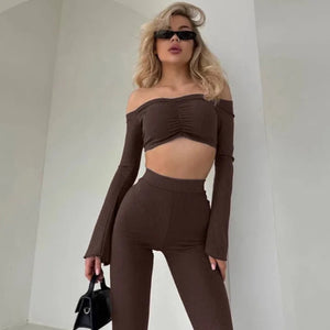 Two Piece Set Crop Tank Top High Waist Wide Leg Pants