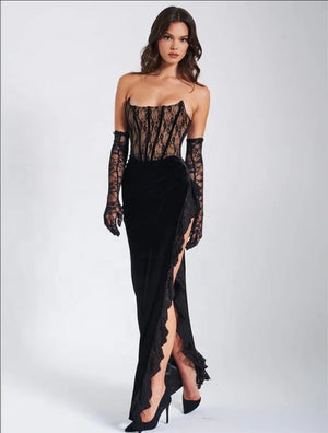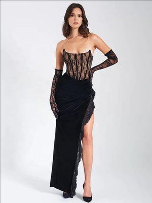 Sequin Sloping Off Shoulder Side Slit Evening Party Dress