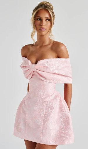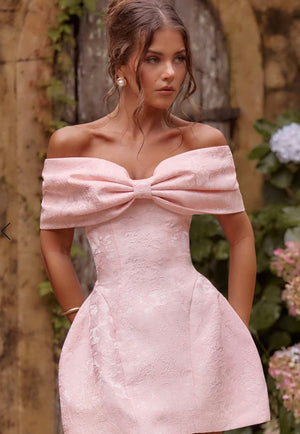 Statement one-shoulder bow, a bold open back, and a sleek, flattering silhouette