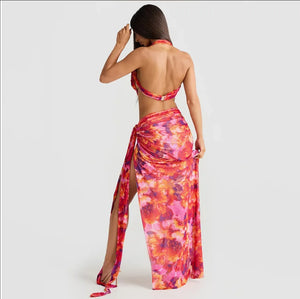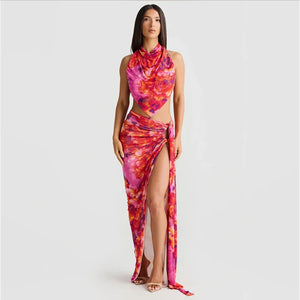 Floral Print Two Piece Set Summer Top And Long Skirt