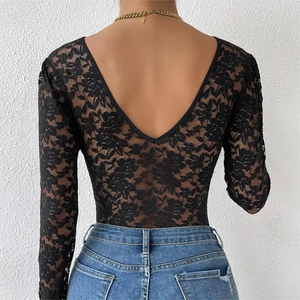 Short Sleeve Lace Bodysuit Club Party Top